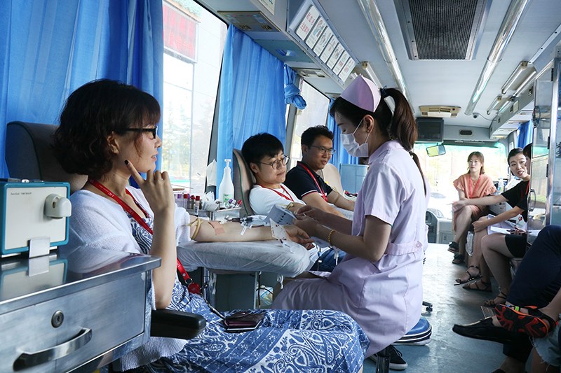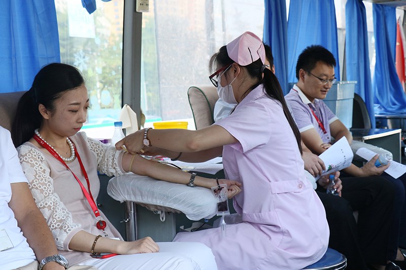 上午9點半,獻血活動正式開始。雖然工作繁忙,但是大家仍然熱情高漲,積極參與到無償獻血活動中來,認真填表、體檢、化驗直至成功登上采血車,車內愛心涌動,涓涓熱血匯入袋中。