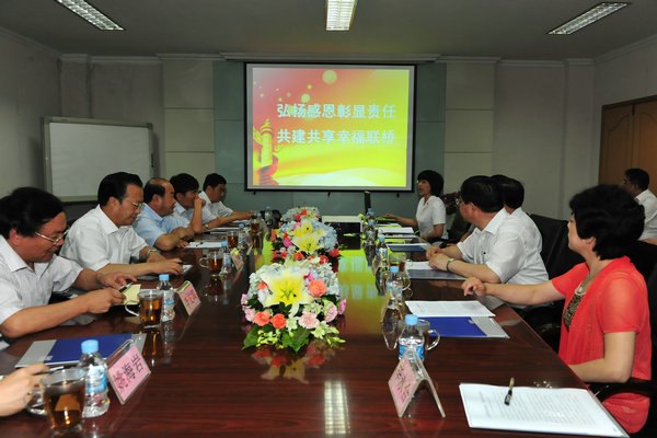 聯橋集團黨委副書記、工會主席宋威麗向趙熙殿副書記一行介紹了集團公司和工會工作的基本情況,著重匯報了聯橋集團在“弘揚感恩彰顯責任,共建共享幸福聯橋”工作中的舉措和體會。